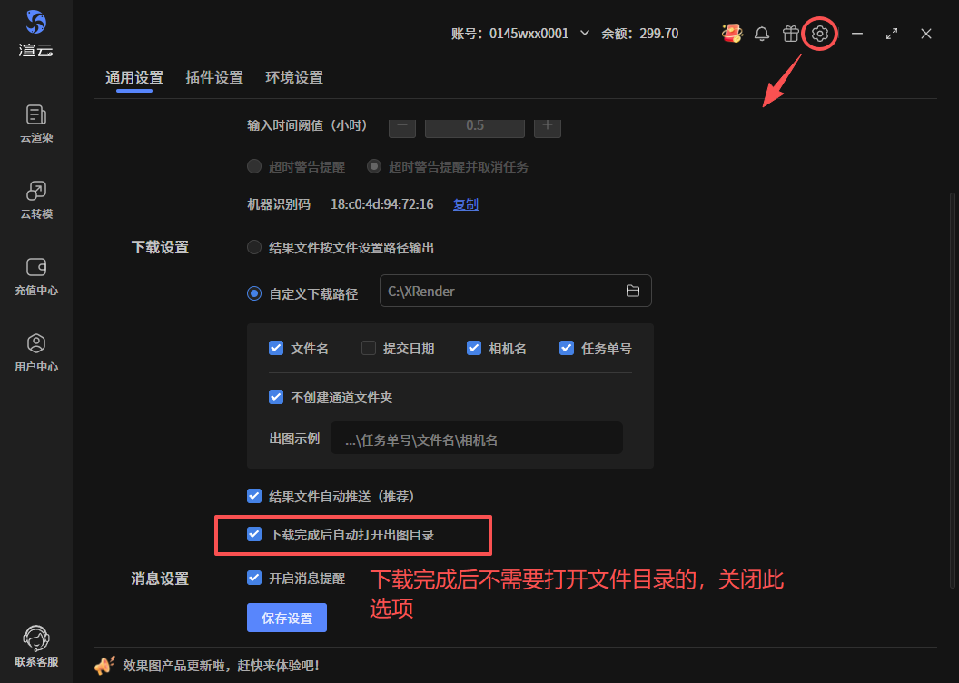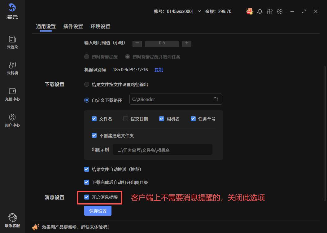 文件渲染完成进入下载阶段,或文件发送邮箱等情况下,屏幕右下角会有消息提醒,默认开启,可关闭,关闭后不再弹框提醒