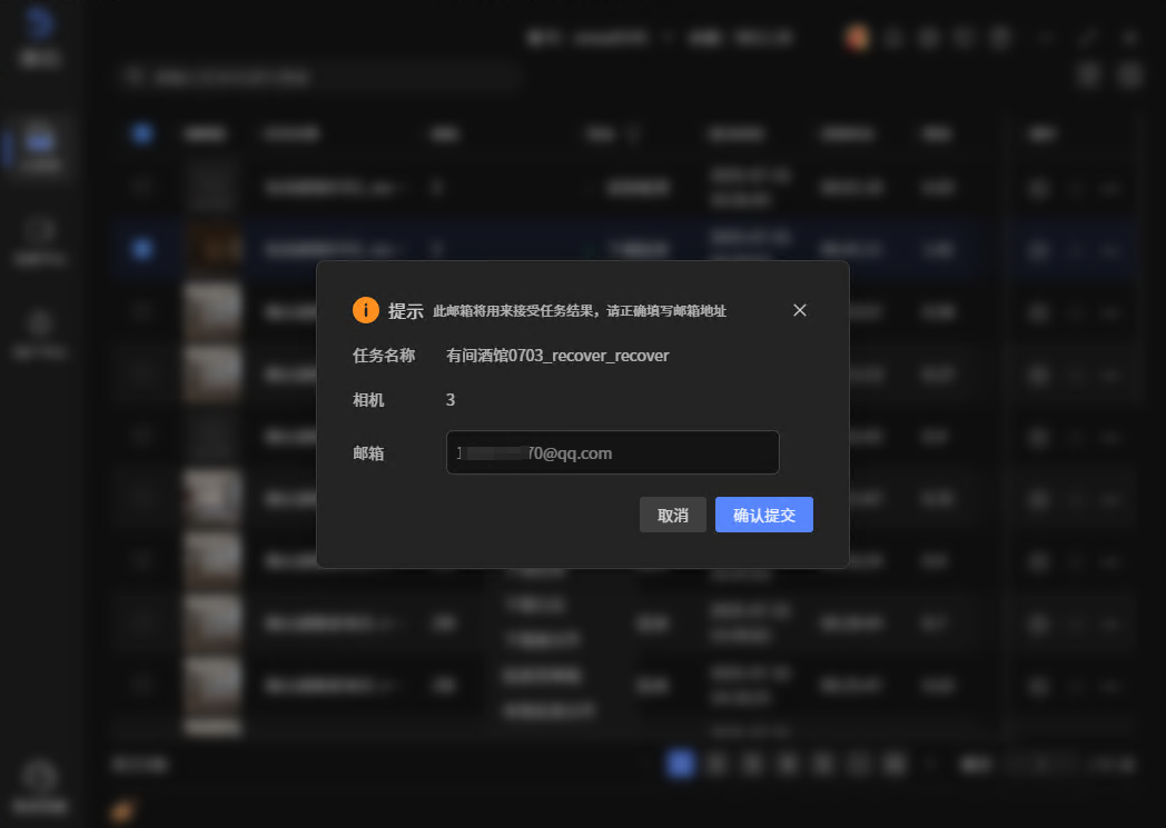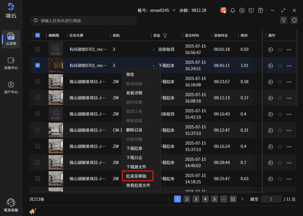 已提交的任务(除上传取消、上传失败和渲染失败)支持操作结果文件发邮箱,操作后,待文件有渲染结果后,自动将结果文件以链接的方式发送到用户指定邮箱,链接24小时内有效
