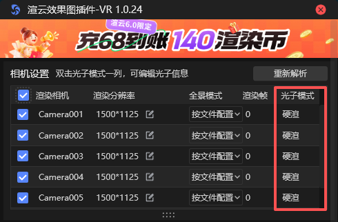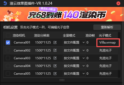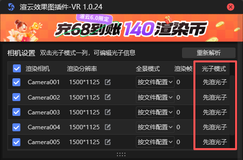 - iii. 该步骤设置的光子比例,仅对光子模式为“先渲光子”的镜头生效,如截图所示: